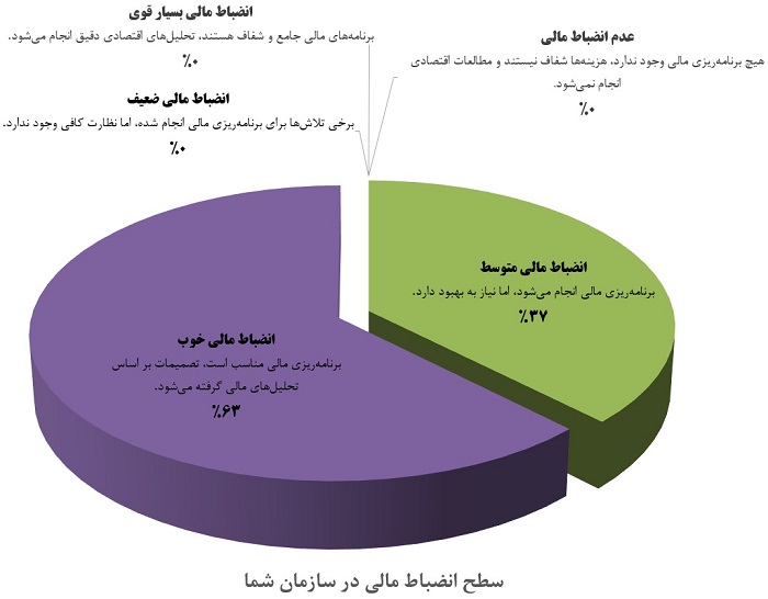 نتایج این پرسشنامه نشان میدهد که در حوزهی توسعهی پایدار، ۳۷.۵٪ از شرکتها تنها آگاهی حداقلی از این مفهوم دارند و صرفاً در صورت اجبار، تغییراتی را اعمال میکنند. ۳۷.۵٪ دیگر، با وجود داشتن تعهد استراتژیک، در عمل هنوز نتوانستهاند اقدامات مؤثر و پایداری را اجرا کنند. تنها ۲۵٪ از شرکتها بهطور عملی در مسیر توسعهی پایدار گام برداشتهاند، اما هیچ شرکتی موفق به دستیابی به سطحی از تأثیر مثبت بر جامعه و محیطزیست نشده است. در حوزهی انضباط مالی، ۳۷.۵٪ از شرکتها در سطح متوسط عمل میکنند، اما همچنان برنامهریزی مالی آنها دارای نقصهای اساسی است. ۶۲.۵٪ از شرکتها تا حدودی از برنامهریزی مالی مناسب برخوردارند، اما هیچ موردی از یک سیستم مالی شفاف و دقیق که شامل پیشبینیهای مبتنی بر تحلیل اقتصادی باشد، مشاهده نشده است.