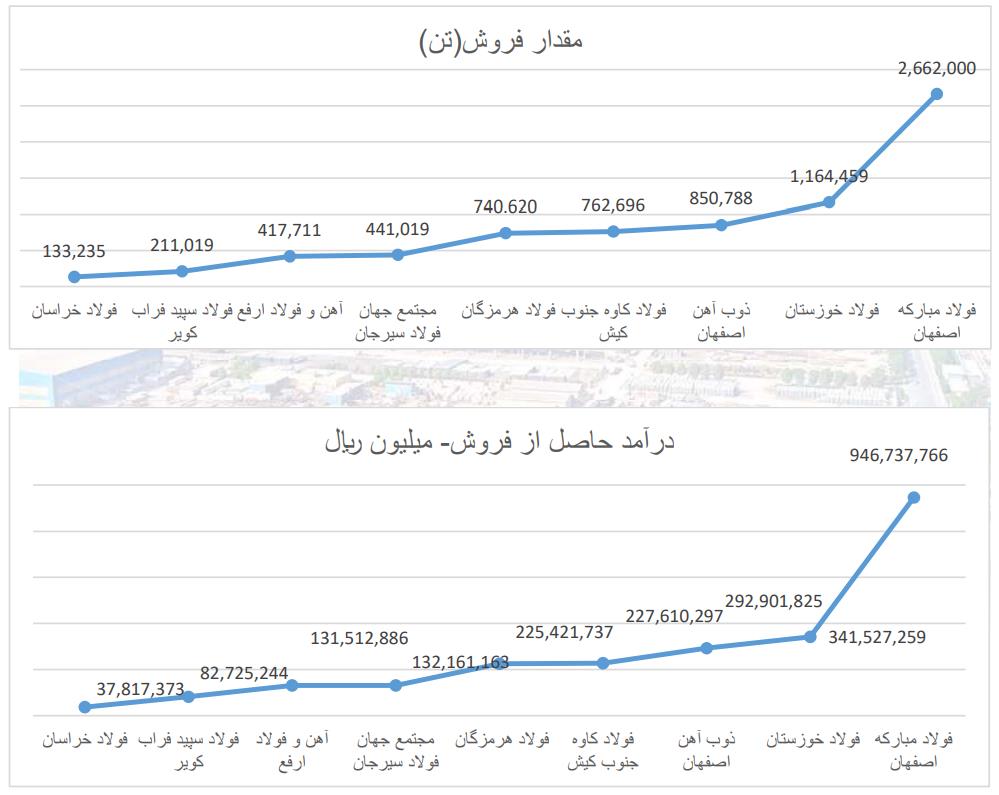 فارغ از عملکرد قابل توجه هرمزگان، در تصویر ذیل تفاوت فاحش رتبه اول (فولاد مبارکه) با رتبههای بعدی در فروش فولاد در کشور را مشاهده میکنیم که فولاد مبارکه ۲.۵ برابر فولاد خوزستان، فروش وزنی دارد. البته این فروش با راه اندازی نورد گرم دو به محصولات ویژه تبدیل خواهد شد و ارزش افزوده بالایی برای سهامداران به ارمغان خواهد آورد.