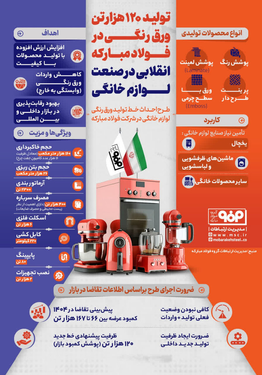 ایران نیز در این میان، با بهره‌گیری از ظرفیت‌ های فولاد مبارکه و شرکت‌ های پایین‌ دستی، در مسیر تبدیل شدن به یکی از قطب‌ های منطقه‌ای تولید ورق رنگی و لوازم خانگی قرار دارد. پیوند این دو صنعت می‌تواند ضمن کاهش هزینه تولید، موقعیت ایران را به‌عنوان بازیگری فعال در بازارهای آسیای میانه، قفقاز و خاورمیانه تقویت کند.