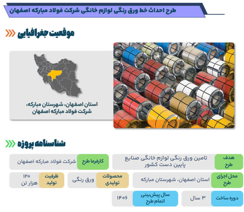 این پروژه که قرار است تا سال ۱۴۰۶ به بهره‌برداری برسد، دارای ظرفیت اسمی ۱۲۰ هزار تن در سال بوده و به‌طور ویژه صنعت لوازم خانگی کشور را هدف قرار داده است.