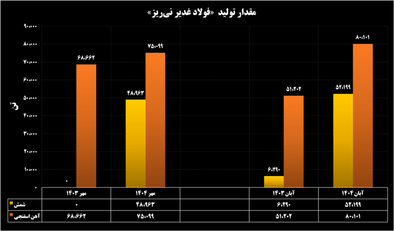 این مجموعه در آبان ماه سال جاری نیز موفق شد بیش از ۵۲ هزار تن بیلت و بیش از ۸۰ هزار تن آهن اسفنجی تولید کند که این آمار نشاندهنده ثبات تولید و ارتقای بهرهوری خطوط عملیاتی است.