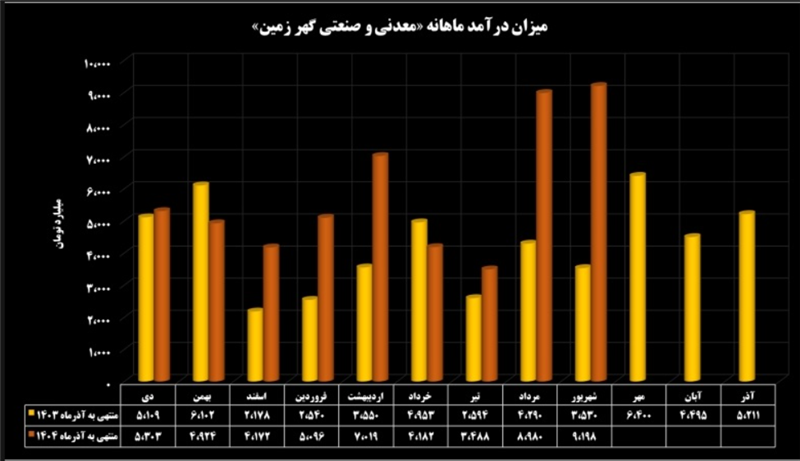 شرکت معدنی و صنعتی گهرزمین در ششمین ماه سال ۱۴۰۴ و نهمین ماه از سال مالی خود، از فروش محصولات تولیدی خود در بازار داخل و خارج از کشور مبلغی بالغ بر ۹ هزار و ۱۹۸ میلیارد تومان درآمد محقق ساخت. درآمد «کگهر» در مقایسه با ماه گذشته با رشد ۲ درصدی و در مقایسه با دوره مشابه سال گذشته با افزایش ۱۶۰ درصدی همراه شد.