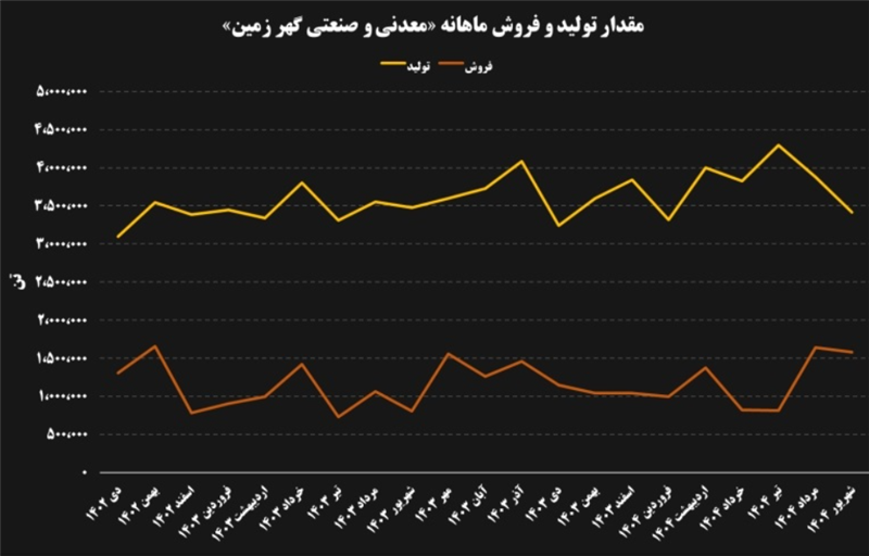 شرکت معدنی و صنعتی گهرزمین از ابتدای سال مالی خود تا پایان شهریورماه سال ۱۴۰۴ (دوره ۹ ماهه) حدود ۳۳ میلیون و ۴۱۸ هزار و ۶۸۴ تن تولید تجمیعی ثبت کرده که موفق به فروش ۱۰ میلیون و ۴۴۰ هزار و ۴۷۸ تن از محصولات خود شد. مقدار تولید تجمیعی این شرکت نسبت به دوره مشابه سال گذشته نزدیک به ۸ درصد رشد داشته و مقدار فروش تجمیعی این شرکت نیز هم حدود ۸ درصد افزایش داشته است.