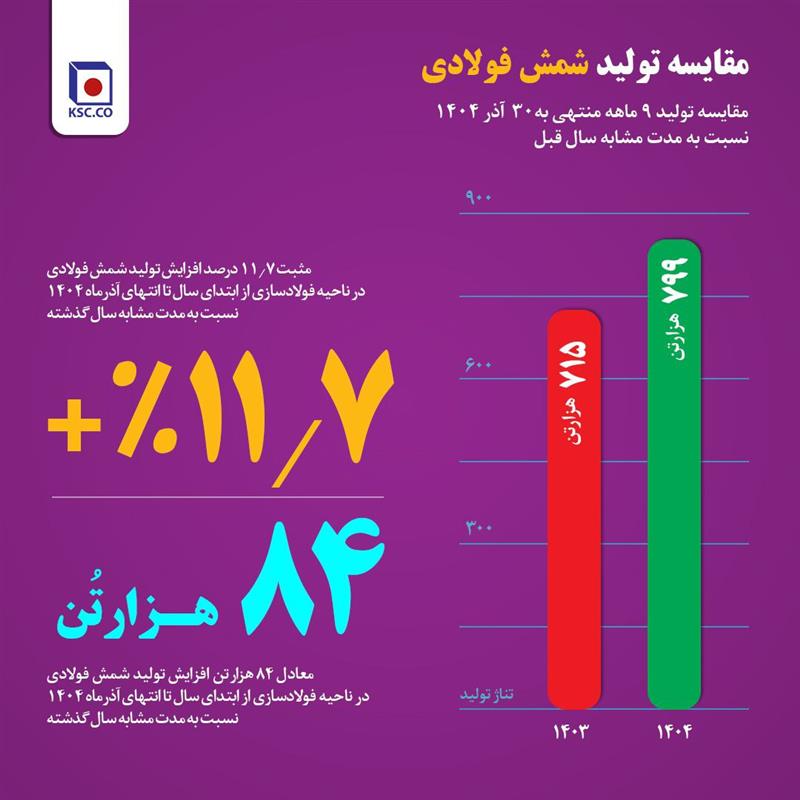 برآیند آمار تولید ۹ ماهه و جهش‌های ثبت‌شده در آذرماه نشان می‌دهد مجتمع فولاد خراسان با اتکا به مدیریت بهره‌برداری، انسجام عملیاتی و سرمایه انسانی متخصص خود، توانسته است مسیر رشد تولید را در بخش عمده‌ای از زنجیره تثبیت کند؛ مسیری که تداوم آن، زمینه‌ساز تحقق اهداف تولیدی، افزایش تاب‌آوری عملیاتی و ارتقای جایگاه این شرکت در صنعت فولاد کشور خواهد بود.