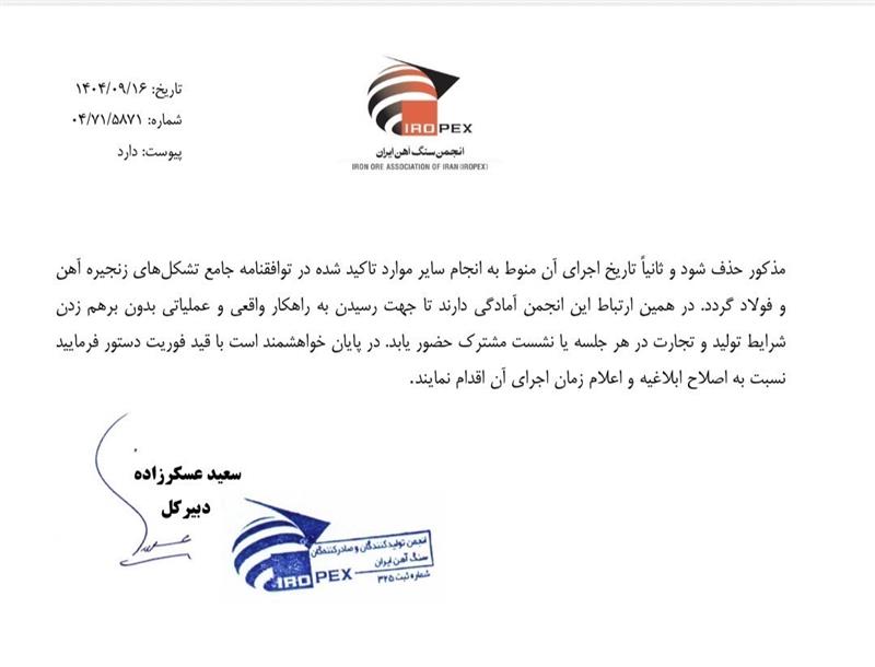 وی افزود: «متعاقب آن، انجمن نوردکاران نیز نامه مشابهی ارسال کرد، اما انجمن فولاد علیرغم توافق قبلی، ترجیح داد سکوت کند.»