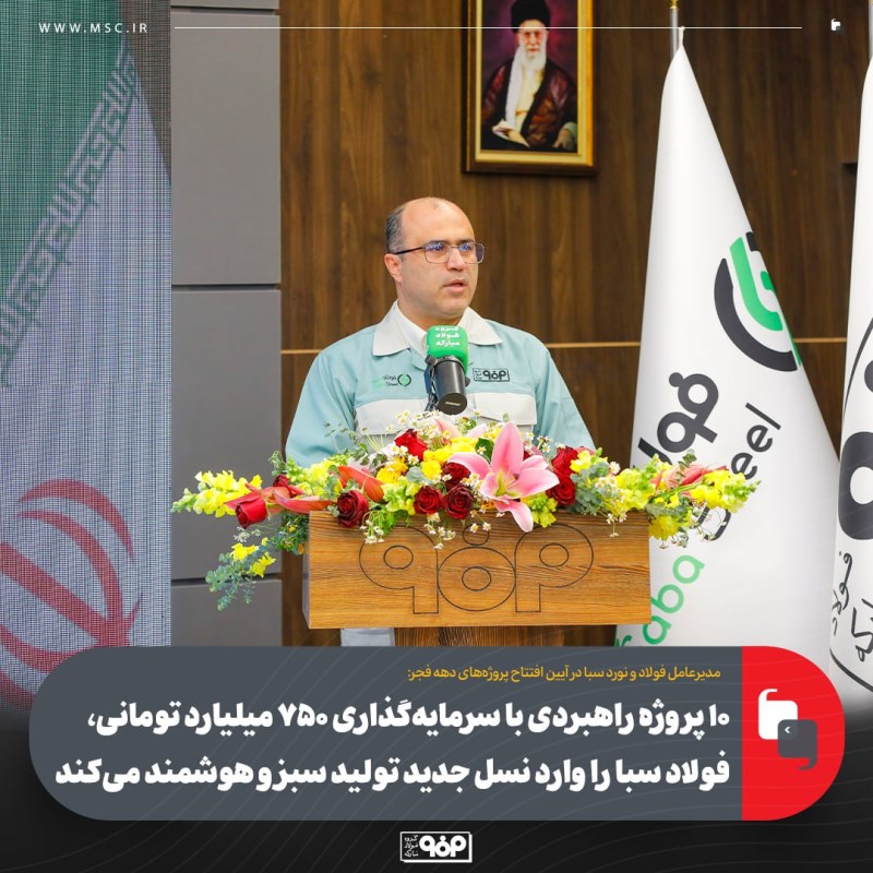 ۱۰ پروژه توسعه‌ای و زیربنایی فولاد و نورد سبا با سرمایه‌گذاری بیش از ۷۵۰ میلیارد تومان و تمرکز بر محیط‌زیست، تحول دیجیتال و افزایش بهره‌وری، هم‌زمان با دهه فجر به بهره‌برداری رسید.