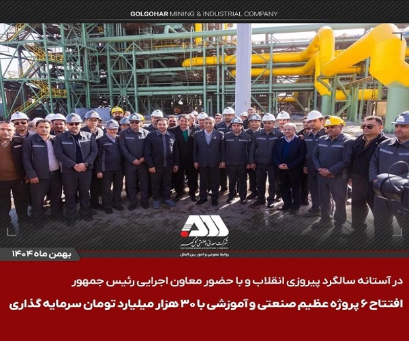 در آستانه چهل و هفتمین سالگرد پیروزی انقلاب اسلامی، صبح امروز دوشنبه ۲۰ بهمن، ۶ پروژه عظیم صنعتی و آموزشی در منطقه گل گهر سیرجان به دست معاون اجرایی رئیس جمهور افتتاح و بهره برداری از آنان آغاز شد.
