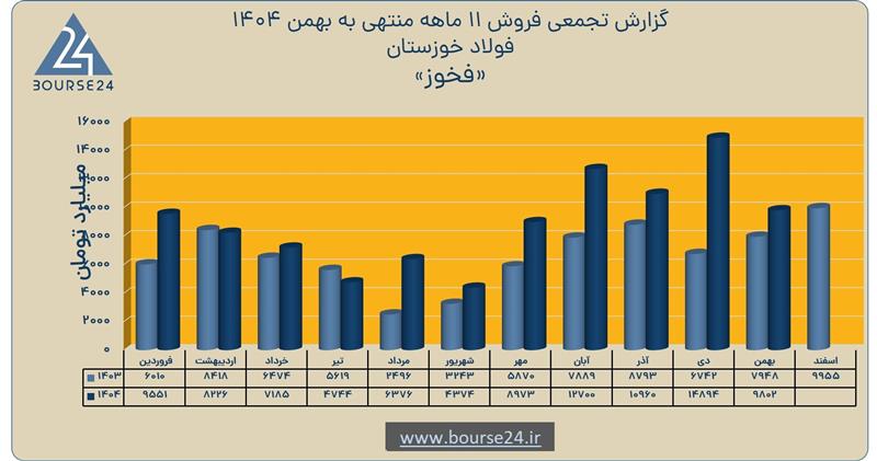 فخوز در بهمن‌ماه نیز فروش ۹۸۰۲ میلیارد تومانی را به ثبت رساند که نسبت به بهمن‌ماه ۱۴۰۳ رشد ۲۳ درصدی را نشان می‌دهد.